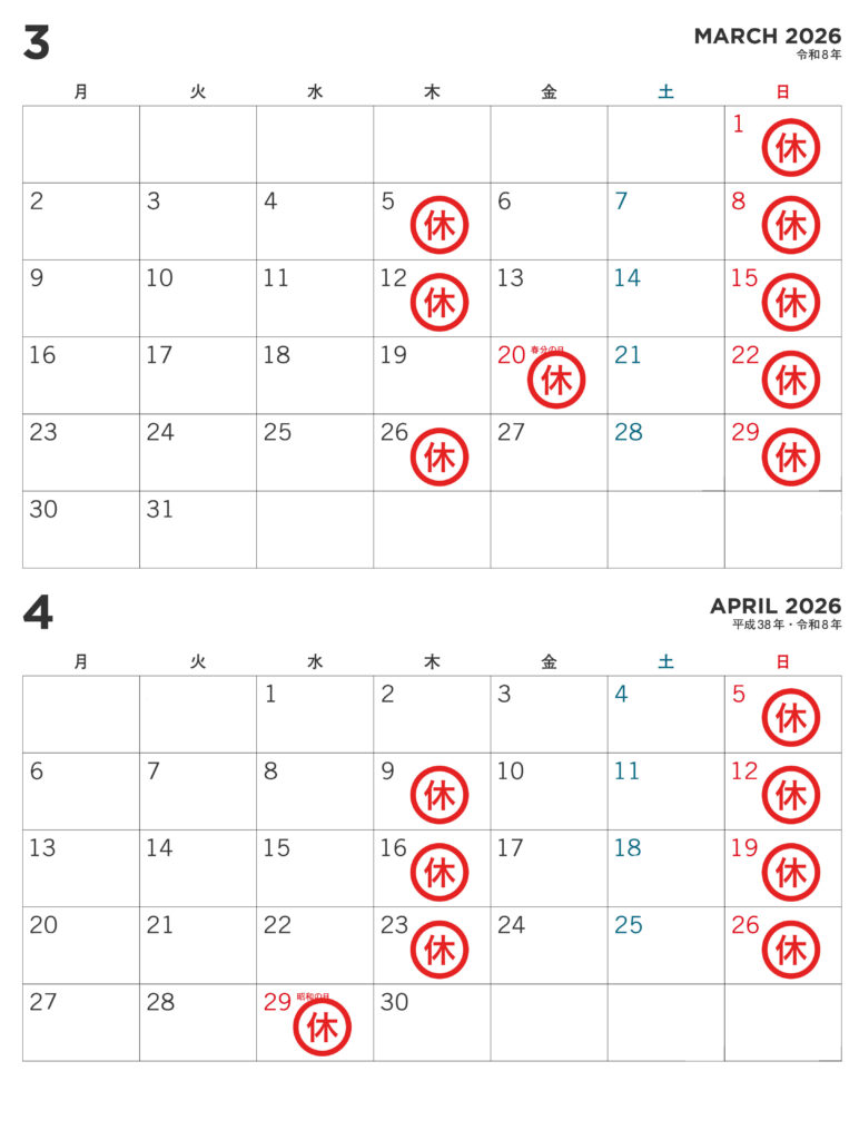 当院では下記日程を休診とさせていただきます。